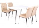 Bộ bàn ghế ăn cao cấp khung thép mạ gồm 1 bàn và 4 ghế, mặt bàn gỗ công nghiệp được phủ sơn PU cao cấp màu trắng bóng.