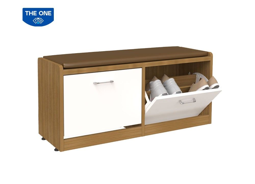 Tủ giầy thông minh, sử dụng chất liệu gỗ công nghiệp Melamine toàn bộ. Tủ được thiết kế phần ghế ngồi bằng đệm mút nhằm tạo sự thoải mái cho người sử dụng khi xỏ giầy.